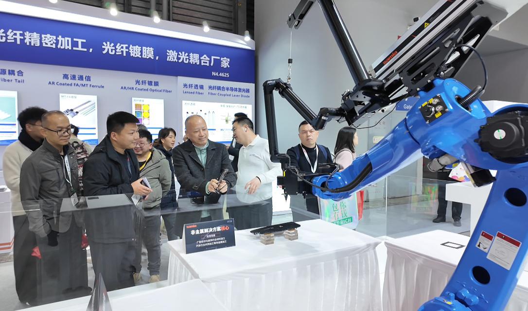 展会三天,斯派特激光展台人流如织,新老客户接踵而至。现场展出的“CO2射频激光器+导光臂”柔性光路组合设备,凭借其在广告标识、汽车内饰等非金属加工领域的广泛应用,吸引了众多专业观众驻足交流。
