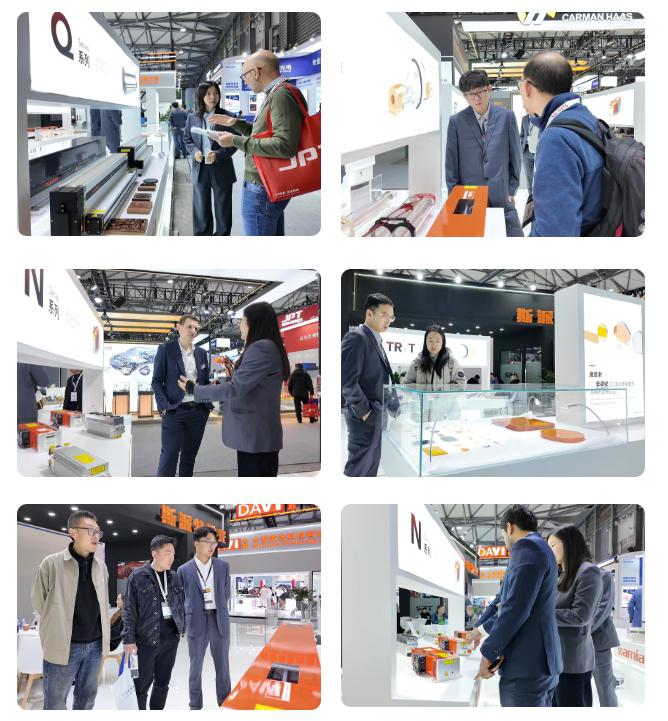 展会三天,斯派特激光展台人流如织,新老客户接踵而至。现场展出的“CO2射频激光器+导光臂”柔性光路组合设备,凭借其在广告标识、汽车内饰等非金属加工领域的广泛应用,吸引了众多专业观众驻足交流。